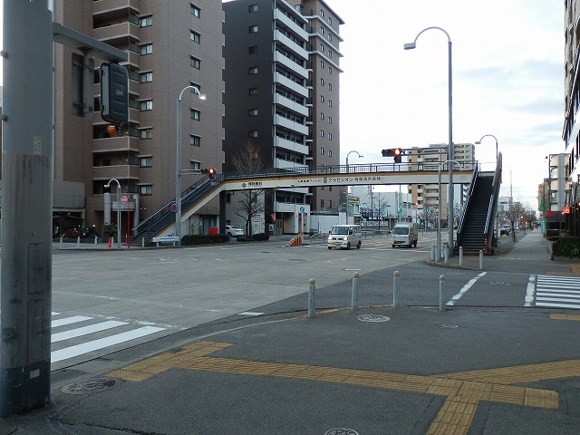 博物館を左に見て、さらに少し歩いて行きますと、横断歩道橋が見えてきます(地図c地点)。この博物館前の交差点で右(西方向)に曲がります。